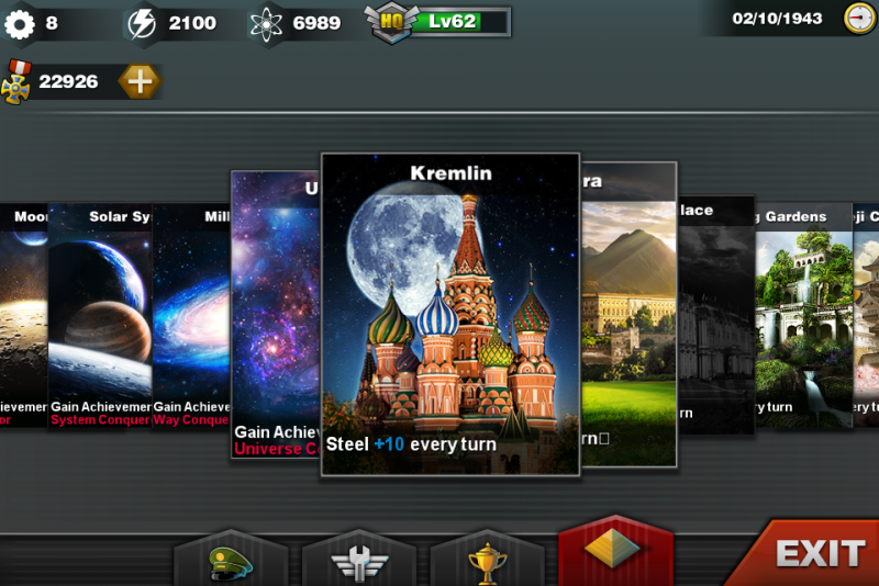 Предстоит грамотно делегировать часть своих обязанностей и полномочий военным генералам, которые являются профессионалами своего дела и имеют за плечами обучение в лучших военных академиях мира. Распоряжаться придется двенадцатью видами войск, среди которых военно-воздушные, ракетные, военно-морские, ядерные и другие, которые позволят взять под контроль на сушу, море и воздух, так и космос. Таким образом можно будет использовать мощь полторы сотни воинских частей и тридцати специальных навыков, которые позволят более эффективно расправляться с противниками. В конце концов можно заполучить одиннадцать достижений за различные заслуги в своем мастерстве. Взломанная версия позволит использовать неограниченное количество медалей.