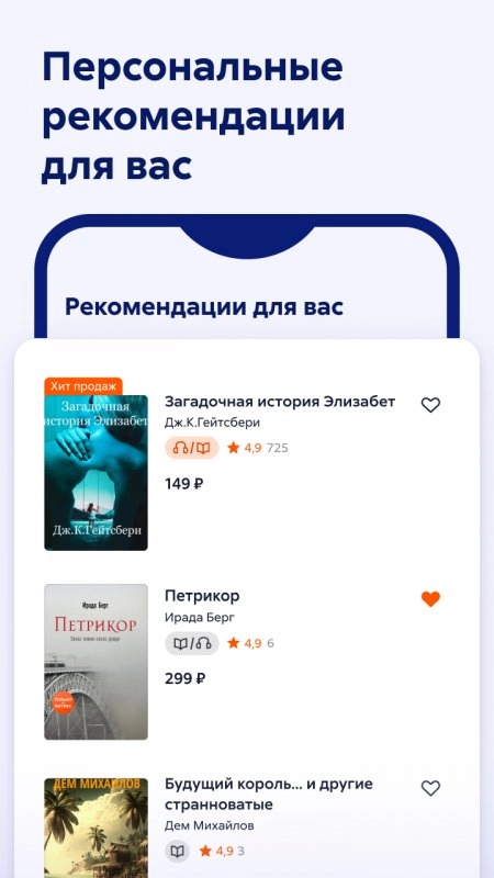 - Можно скачивать книги на смартфон, чтобы затем слушать или читать без подключения к интернету.