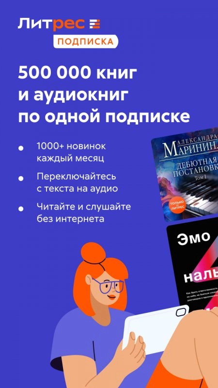 Литрес – самое популярное в СНГ приложение для чтения книг, которое дает доступ к огромной библиотеке классических и современных произведений, насчитывающей уже более 1 миллиона экземпляров.
