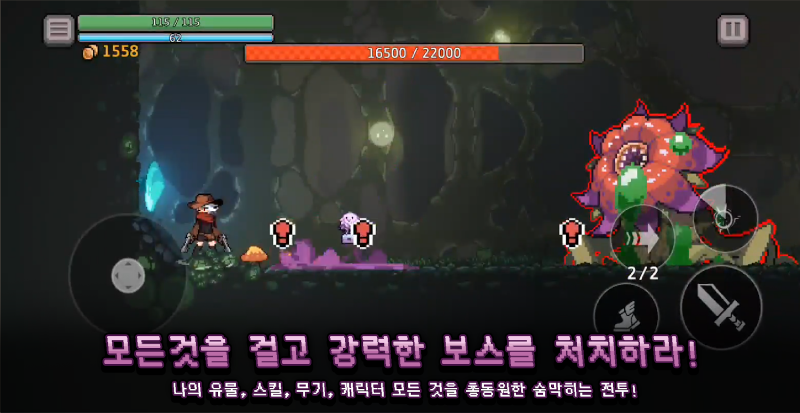 Dungeon Slasher: Roguelike – динамичный приключенческий экшен платформе с видом сбоку и механикой «рогалика», где игрокам предстоит бродить по мрачным подземельям и уничтожать различных противников и могущественных боссов.