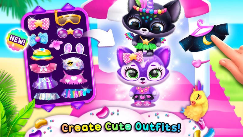 Всего подготовлено множество забавных и интересных мини-игр, где можно изучать музыкальные инструменты, заниматься разными видами спорта и многое другое. Также нужно позаботиться, чтобы холодильник всегда был наполнен разнообразными продуктами, включая сладости, фрукты и овощи. В распоряжении игроков будет несколько локаций, которые отличаются набором действий, среди них спальня, ванна, кухня, зал и игровая комната. За заработанные монетки можно покупать своим питомцам вкусные лакомства и милые костюмчики. Взломанная версия позволит использовать неограниченное количество игровой валюты.
