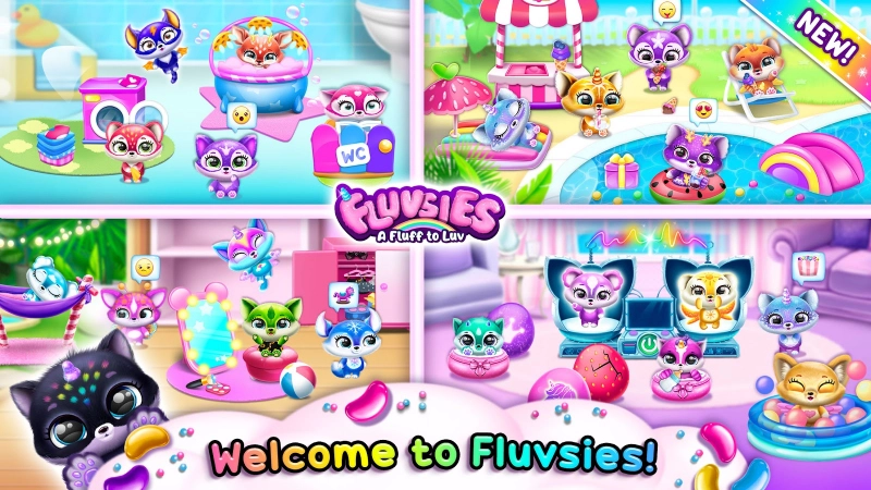 Fluvsies – великолепный развлекательный и одновременно обучающий симулятор для самых маленьких игроков, где необходимо всячески ухаживать за своим необычным питомцем, играть, кормить, обучать и просто весело проводить время вместе.
