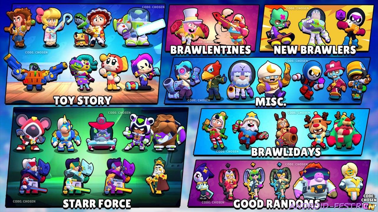 - Большое количество крутых гиперзарядов и невероятныъ скинов для любимых бравлеров.