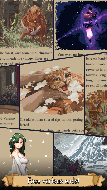 Пользователи перенесутся в огромный открытый мир, который наполнен различными персонажами и событиями. Здесь будет многое зависеть от выбора ответов главного героя, а именно дальнейшее развитие сюжета и взаимоотношения с другими персонажами. Также нужно уделять пристальное внимание прокачке героя, при чем прямиков в книге, так как геймплей выполнен в оригинальном текстовом формате. Здесь геймеров ожидает множество неожиданных моментов и сюжетных поворотов. Можно будет наблюдать за характеристиками протагониста и выбирать по какому пути идти, чтобы в дальнейшем узнать куда приведет этот путь.