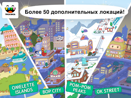 Песочница от студии Toca Boca за несколько лет развития привлекла миллионы детей и родителей со всего мира. Игра легко узнается с первых скриншотов за счет фирменного оформления и стилизованных персонажей, больше напоминающих милых тамагочи. Весь геймплей построен вокруг забавных героев, которые только и ждут ваших действий. Город оживает в тот момент, когда ребенок начинает фантазировать и экспериментировать с контентом. Игровой мир состоит из тематических районов, общественных мест, площадок и фестивалей, жилых домов и вилл. Если надоест городская обстановка, можете отправиться в путешествие на остров через местный аэропорт. Возьмите с собой любимых героев, питомцев и летние наряды!