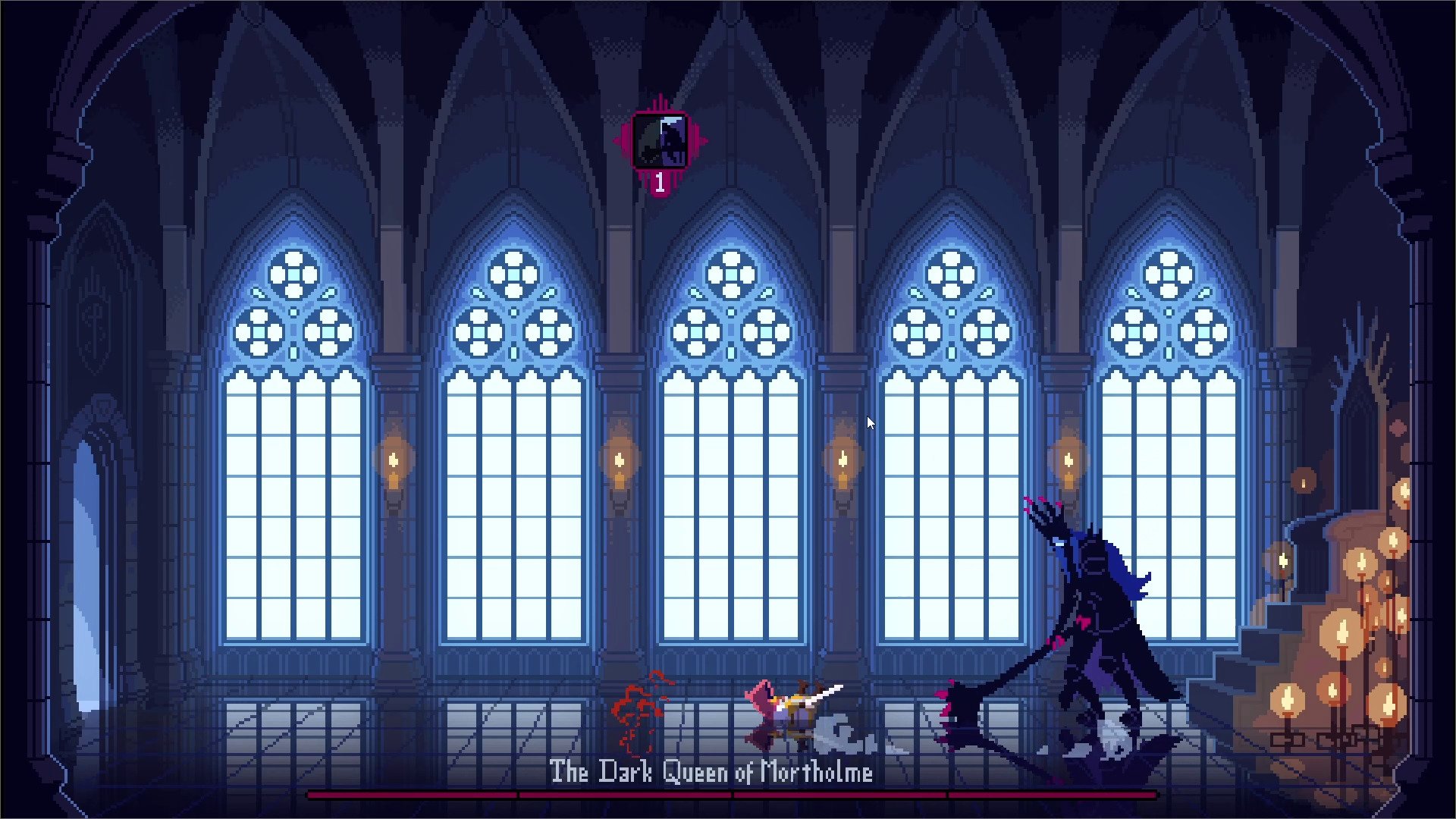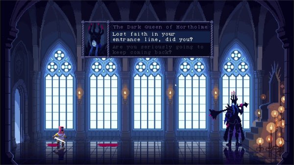 Однако, вас не будут утруждать длительной дорогой и многочисленными попытками добраться до места сражения. The Dark Queen of Mortholme начинается сразу с приемного зала, где состоится первый разговор между героем и королевой, последующие битвы, другие диалоги и все действие игры. Авторы сэкономили на мире, но качественно проработали единственную локацию – нарисовали красивый фон, продумали анимации, интерактив, детализацию каждого предмета и украшения. Вас ждет длительное и напряженное сражение с главным боссом, которое будет прерываться на философские разговоры о смысле жизни, месте в этом бренном мире и так далее.